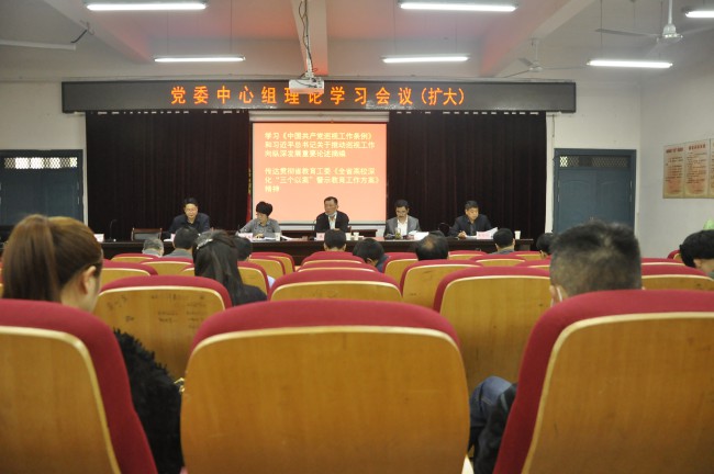 5月6日,校黨委召開理論學習中心組擴大會議,集體學習了《中國共產黨巡視工作條例》和習近平總書記關於推動巡視工作向縱深發展的重要論述摘編,傳達貫徹省委教育工委關於《全省高校深化“三個以案”警示教育工作方案》通知精神,學習市委深化“三個以案”警示教育有關文件通報和學習材料。黨委書記朱宏主持會議,校領導、全體二級機構負責同誌參加會議。