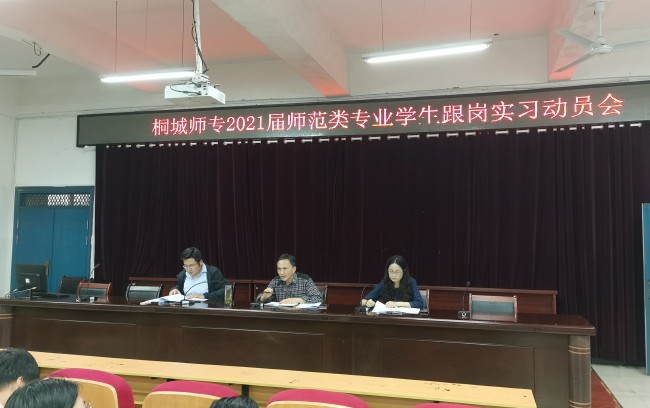 9月29日下午,教務處在以智樓一樓報告廳召開2021屆師範類專業跟崗實習動員會。教務處處長黃洪沫、學生處副處長王斌、教務處副處長程愛蘭出席。各係負責人、全體指導教師、駐點教師、畢業班輔導員、各實習點負責同學參加,黃洪沫主持。