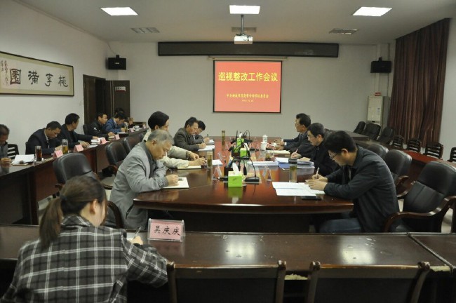 根據巡視整改工作方案“日報告、周督查、旬會商”規定,為落實整改工作任務,壓實巡視整改責任鏈條,10月28日下午校黨委在惜抱樓會議室召開巡視整改專題會議,聽取各牽頭部門關於巡視整改任務落實情況的匯報。黨委書記朱宏主持,黨委副書記、校長沈波,黨委委員、副校長吳登明,黨委委員、組織人事處處長王宏偉出席,學校二級機構主要負責同誌,各支部書記,巡視整改領導小組辦公室成員參加。