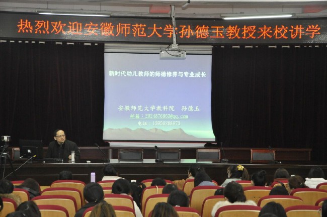 最後,孫德玉用前蘇聯教育家阿莫納什維利的名言“要知道,我不是一個教書匠,我是受社會所信托的人。社會把培養、教育新人---未來一代人的事業托付給了我。這是我的最崇高的事業,是我的頭等大事,是我的職業義務。這是我的使命。”結束講座。整場講座氛圍熱烈,幽默詼諧,高潮迭起,富於邏輯性和批判性,發人深省,收到與會師生們的一致好評。(辦公室  撰稿:學前教育係  核稿:黃成林)