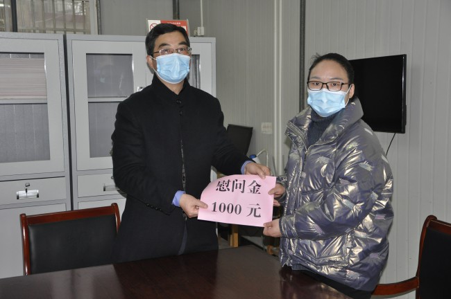 在校學生處辦公室,校長一行親切慰問了學生處心理學教師胡敏,沈波仔細詢問胡老師工作、生活和家庭情況,細致了解胡老師當前家庭所遇到的困難。鼓勵她勇挑生活重擔,兼顧好工作和家庭,表示學校將積極爭取相關補助,提供支持和幫助,並向她的家人問好。
