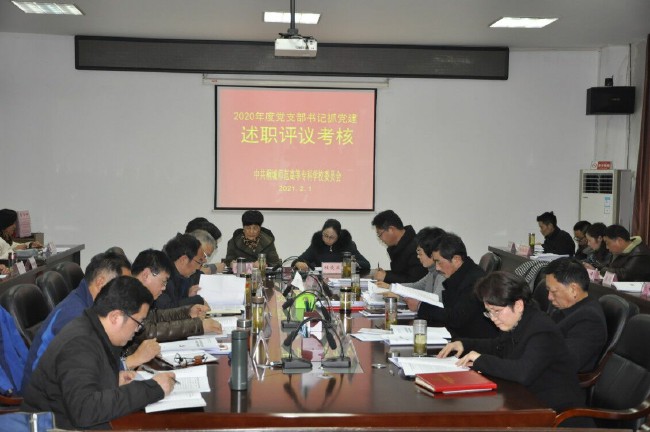 為進一步加強和規範黨內政治生活,推動全麵從嚴治黨向基層延伸,促進基層黨建全麵進步、全麵過硬。2月1日,學校召開2020年度基層黨支部書記抓黨的建設述職評議考核會議。黨委副書記、校長沈波出席會議並點評、講話。黨委委員、副校長吳登明,副校長程玉梅,黨委委員、紀委書記張敏麗,各支部書記、支部委員,“兩委員一代表”參加,會議由黨委委員、組織部長王宏偉主持。