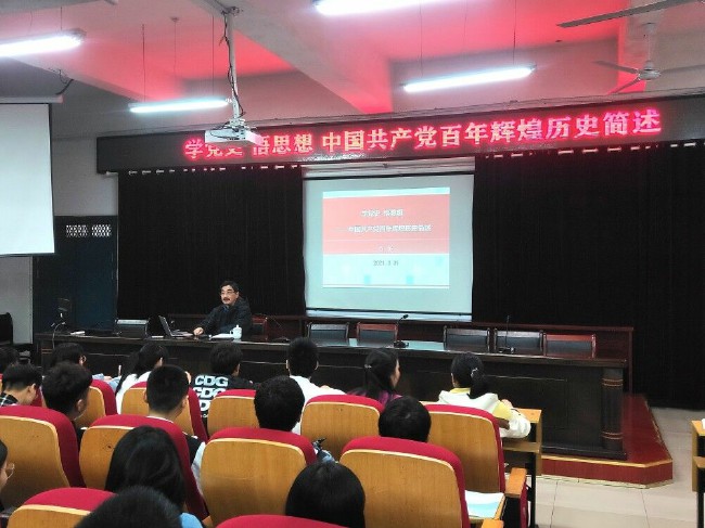 3月31日下午,校長沈波在以智樓報告廳為學生上了一堂題為“學黨史,悟思想---中國共產黨百年輝煌曆史簡述”的思政課。校團委、思政教學部負責同誌與校係兩級學生會幹部共同聆聽了課程。