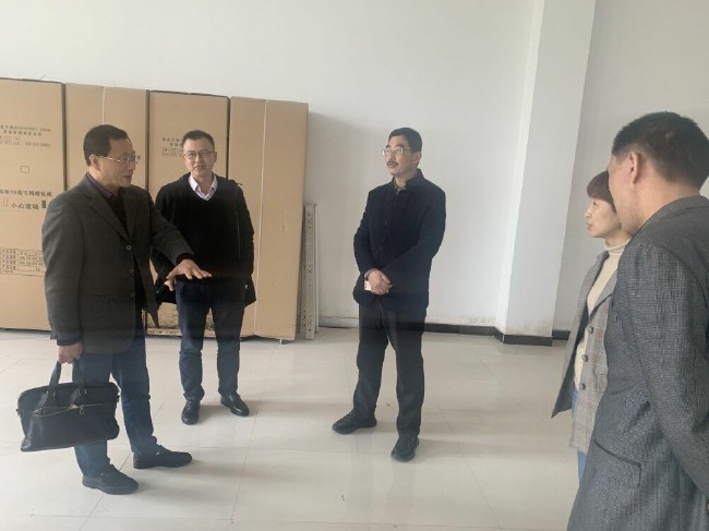 曹艾群一行實地查看了新校區規劃中的檔案室場地,並就檔案室建設過程中的功能區合理劃分、庫房規範設置給出了具體的意見和建議。