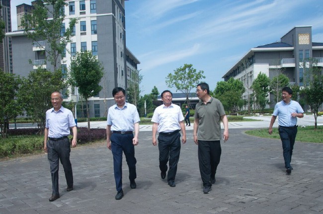 在黨委書記王子龍、校長沈波、副校長吳登明的陪同下,胡紅兵一行實地參觀新校區,聽取新校區建設項目實施、招投標組織、搬遷籌備等有關工作的介紹。