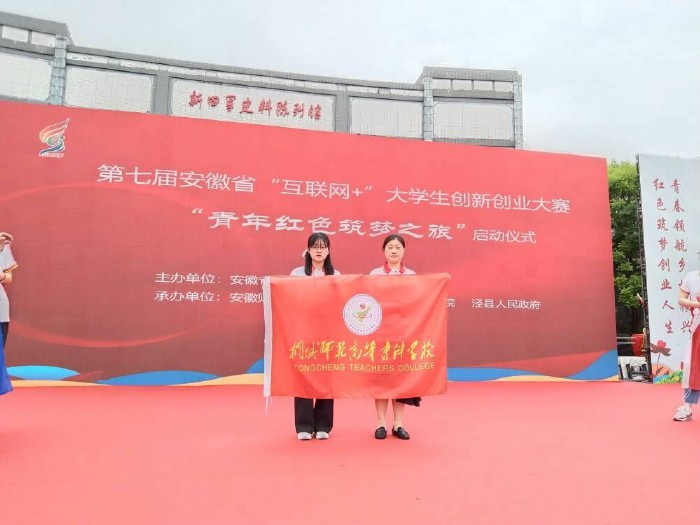 6月21日,第七屆安徽省“互聯網+”大學生創新創業大賽“青年紅色築夢之旅”活動啟動儀式在涇縣舉行。省委教育工委副書記、省教育廳廳長趙振華出席儀式並講話,同時為“青年紅色築夢之旅”活動授旗。桐城師範高等專科學校招生就業處毛永賢和學前教育係學生創業團隊吳倩同學代表學校參加了啟動儀式。