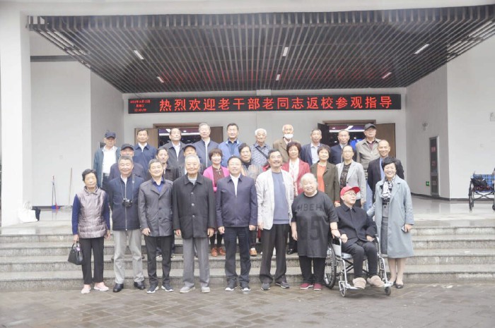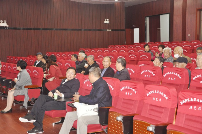 老同誌們見麵後倍感親切,話舊敘新,一路上歡聲笑語,其樂融融。他們在學校工作了幾十年,對學校對教育情有獨鍾,雖然天空飄著雨絲,也絲毫不減參觀校園的熱情,並仔細欣賞學生的畢業作品、觀看新校區建設紀錄片。