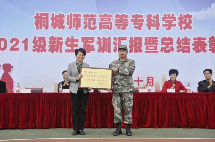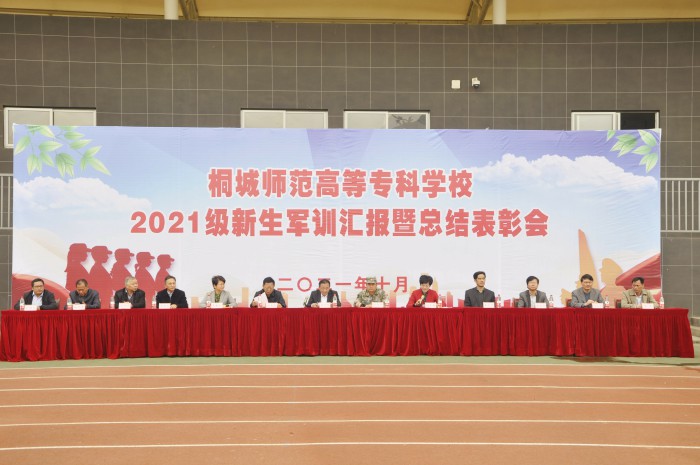 軍訓展英姿,沙場秋點兵。10月18日上午,桐城師專2021級新生軍訓匯報暨總結表彰大會在校田徑運動場隆重舉行。黨委書記王子龍,桐城市委常委、市人武部政委任關興,校領導吳登明、張敏麗出席大會。各係部、處室主要負責人,全體教官、新生輔導員、全體新生參加了大會。大會由副校長程玉梅主持。