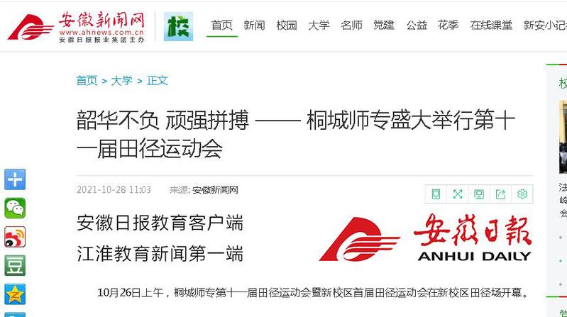 安徽新聞網:《韶華不負 頑強拚搏 —— 桐城師專盛大舉行第十一屆田徑運動會》