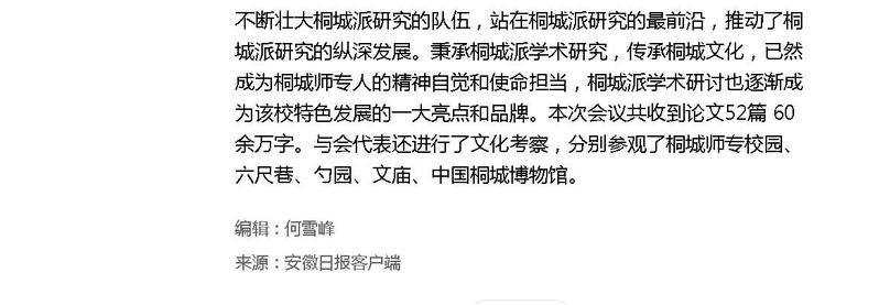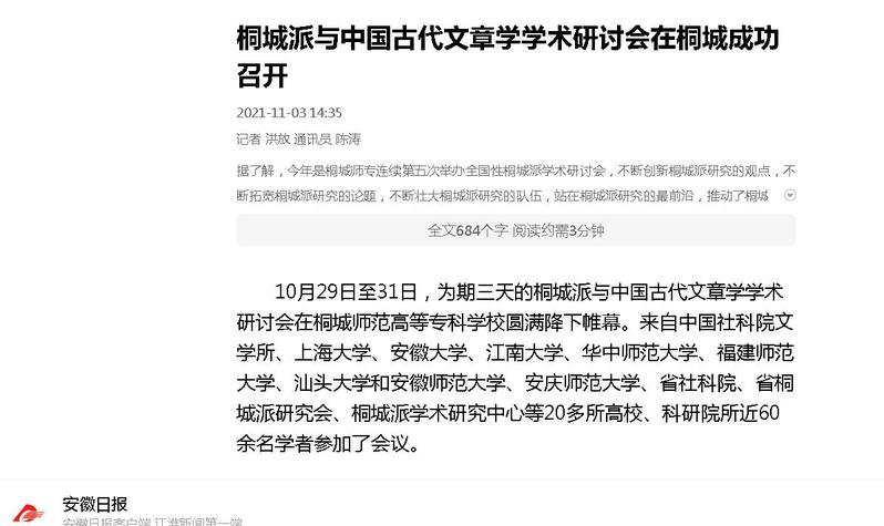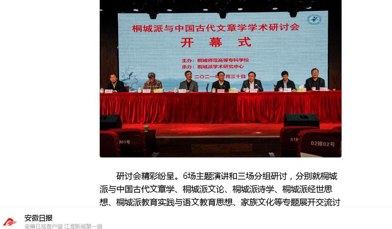安徽日報:《桐城派與中國古代文章學學術研討會在桐城成功召開》
