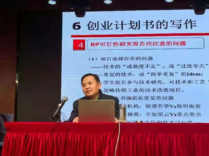 夏斐老師報告的主題為《大學生創新創業賽事項目優質基因的挖掘與培育》。夏老師以一個親身經曆者的故事為起點,從創新創業的背景、路徑、形式和要求等方麵深入介紹了創新創業大賽的產生過程;以互聯網+大賽和挑戰杯大賽為例,詳細講解了項目選題、商業計劃書的寫作要求、BP可行性研究報告的注意事項和參賽中應注意的問題等內容。並以安慶師範大學“漢服社”的成功事例為典型案例,總結了在選題、商業計劃書、路演、答辯等方麵的寶貴經驗,希望同學們多參與、多體驗,主動觀摩優質項目路演,積極與專家導師交流學習,不斷提高整合項目資源的能力,開闊視野格局。
