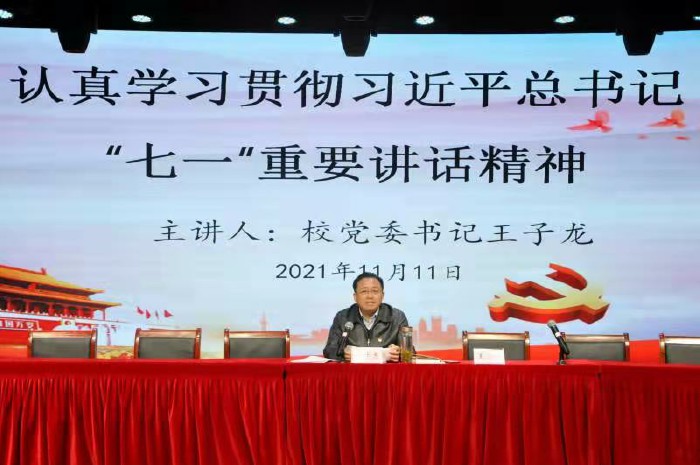 11月11日下午,黨委書記王子龍作培訓班開班典禮動員講話並講授《認真學習貫徹習近平總書記“七一”重要講話精神》專題講座。王書記從“七一”重要講話的意義、內容、黨的偉大成就,習近平總書記關於教育的重要論述,師德師風建設,如何做好黨的事業建設者和接班人四個方麵闡述了重要講話精神,理論與史實結合,知識與情懷交融。