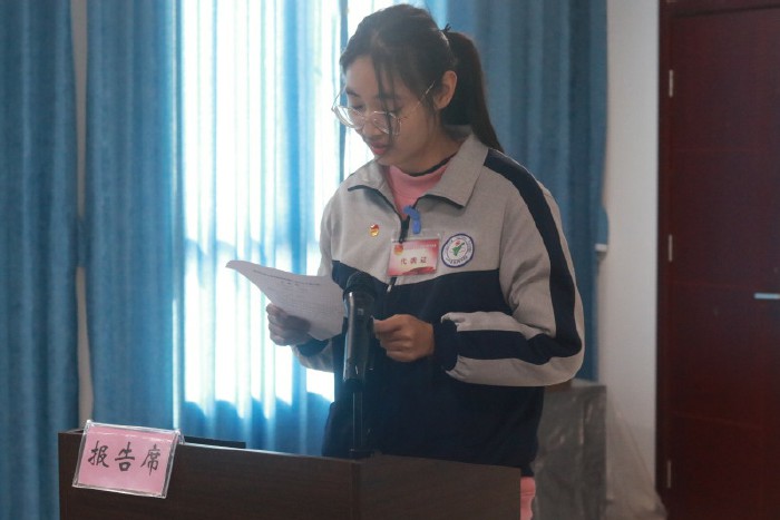 劉思雨同學代表第二屆學生委員會做了《追溯建黨初心 勇擔青春使命 在新時代的舞台上綻放青春光芒》工作報告,報告回顧和總結了上一屆學代會以來我校學生會工作的成績、經驗、問題和不足,深入分析了新形勢下學生會工作麵臨的機遇和挑戰,明確了下一階段的工作思路和發展目標。