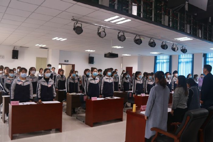 11月20日上午,我校第三次學生代表大會在明德樓二樓報告廳召開。校黨委委員、人事處處長王宏偉、校團委全體工作人員、各係團總支書記、56名學生代表共同參加會議。