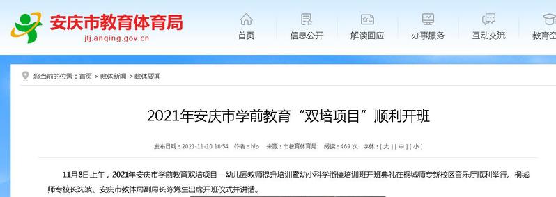 安慶市教育體育局網:《2021年安慶市學前教育“雙培項目”順利開班》