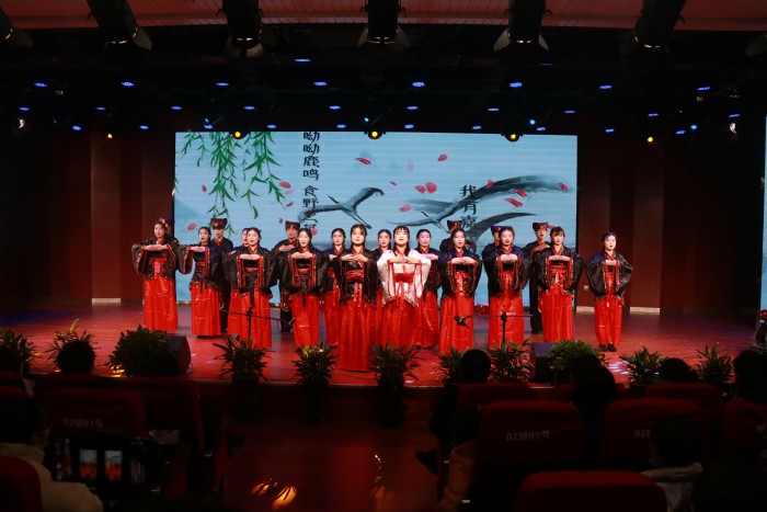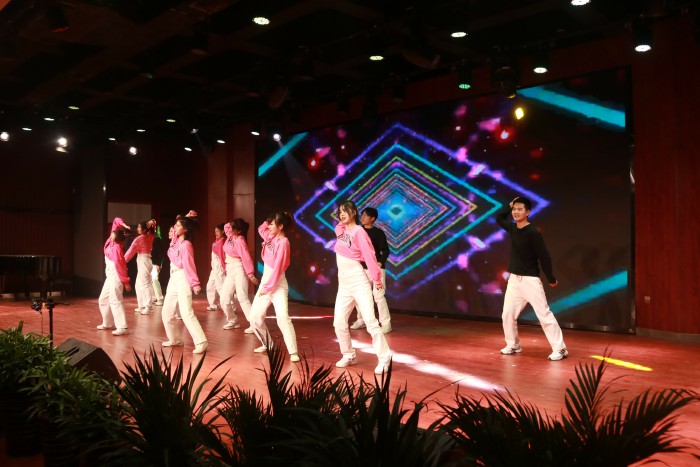 匯演在動感十足的開場舞中拉開序幕,瞬間點燃了現場氣氛。合唱《我喜歡》、《燈火裏的中國》表達了濃濃的愛國情懷,他們用歌聲祝福偉大的祖國繁榮昌盛,贏得了在場師生的熱烈掌聲。歌曲《飄向北方》、《青春》盡情綻放著青春的魅力。吟誦節目《詩經小雅鹿鳴》、舞蹈《京韻畫中娃》、《花開時節動京城》、《雨澗春行圖》等,參演學生充分結合自己專業,完美展示了我校辦學特色。《盛世國樂》、《精忠報國》,呈現了泱泱中國翻天覆地的變化,激勵當下青年學生要用蓬勃向上的時代精神,書寫中華民族偉大複興中國夢的壯麗篇章。獨唱《江山》體現了中國共產黨全心全意為人民服務的宗旨。我校專職輔導員的朗誦《初心薪火相傳使命永擔在肩》,展示了我校教師不忘初心,牢記為黨育人、為國育才使命,薪火相傳,繼續奮鬥,豪邁又出征,揚帆再起航。在歌伴舞《陽光路上》激昂、熱烈的氛圍中,演出落下帷幕。