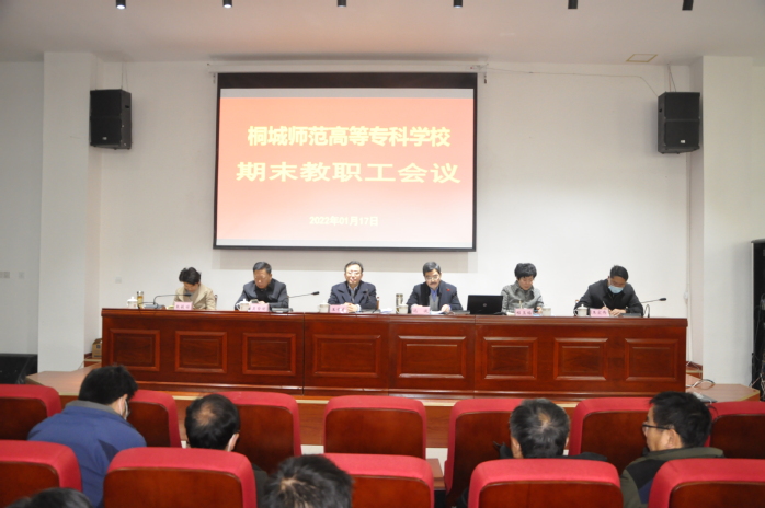 1月17日,學校在其昶樓報告廳舉行期末教職工大會。黨委書記王子龍、副校長吳登明、程玉梅、紀委書記張敏麗出席會議,全體教職工參加大會。會議由校長沈波主持。