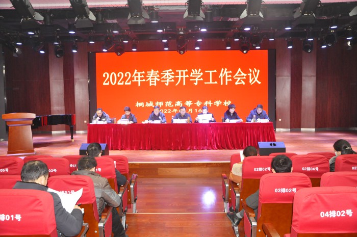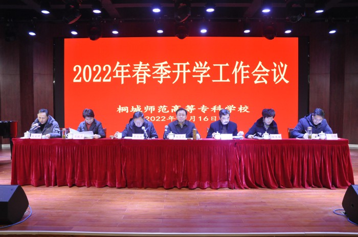 2月16日上午,桐城師專在音樂樓演藝廳召開開學工作會議,校黨委書記王子龍出席會議並講話,校長沈波、副校長程玉梅、紀委書記張敏麗、組織(統戰)部長王宏偉及各處室、係部負責同誌參加會議。會議由副校長吳登明主持。