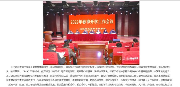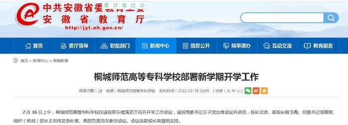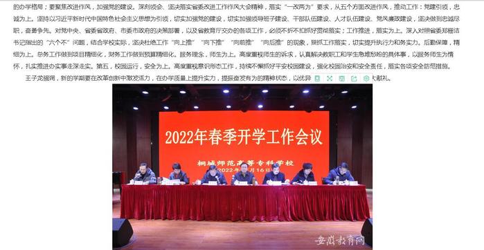 安徽教育網:《桐城師範高等專科學校部署新學期開學工作》