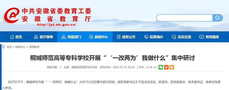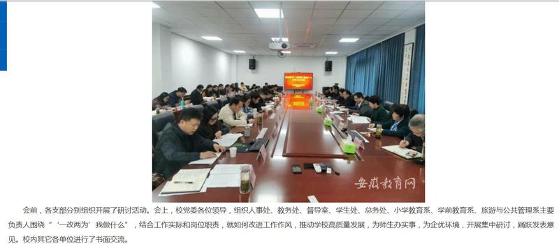 安徽教育網:《桐城師範高等專科學校開展“‘一改兩為’我做什麽”集中研討》