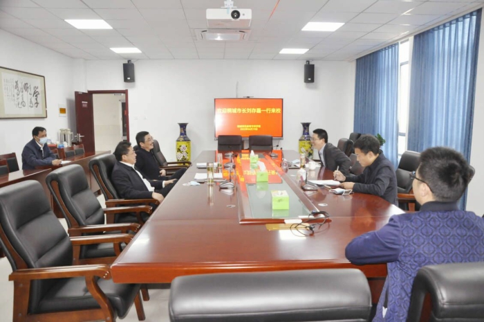 4月19日上午,桐城市人民政府市長劉存磊在桐城市政府辦主任施勁鬆陪同下到桐城師專調研,校黨委書記王子龍、校長沈波熱情接待了劉存磊一行。