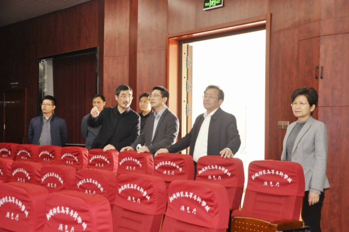 劉存磊一行聽取了桐城師專新校區建設發展和疫情防控工作的介紹,實地考察了學生公寓、食堂、圖書館、音樂廳和美術廳。