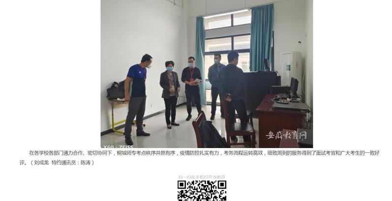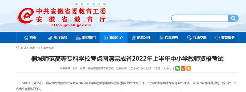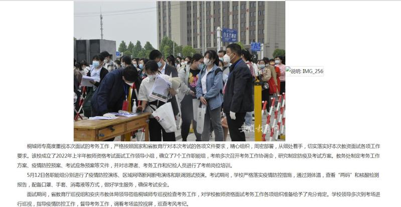 安徽教育網:《桐城師範高等專科學校考點圓滿完成省2022年上半年中小學教師資格考試》
