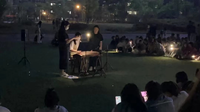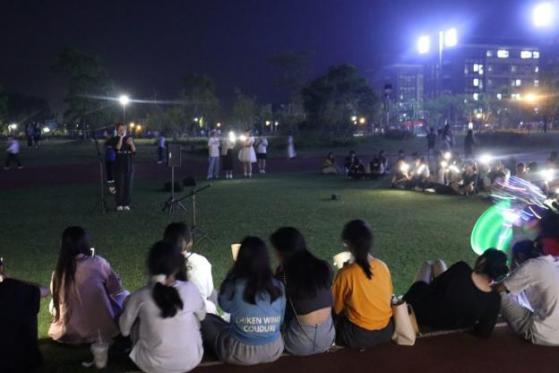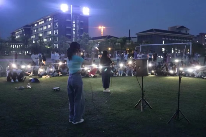 本次主題音樂節活動由藝術與設計係團總支、學生會和吉他協會策劃舉辦,節目形式豐富,有獨唱、合唱、舞蹈、器樂演奏等。皓月當空,草地與音樂相伴,大家揮舞熒光棒,身體隨歌聲搖擺。同學們用飽滿的熱情,動聽的歌聲,為大家帶來一場充滿氛圍感的聽覺盛宴。