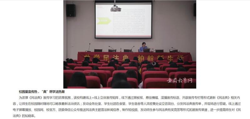 安徽教育網:《民法典進校園 典亮師生生活 桐城師範高等專科學校開展民法典主題宣傳活動》