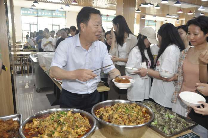 “同學,你家是哪裏的?”“這個菜要不要來點?”“食堂的菜味道怎麽樣?”6月3日上午,黨委書記王子龍、校長沈波、副校長吳登明等校領導來到學生食堂,與同學們共進午餐、歡度佳節。