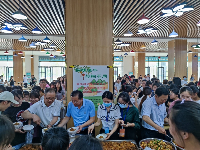 由於疫情影響,同學們不能回家過節,為了讓同學們在這個特殊的時期過好端午節,學校舉辦了“粽情端午,與粽不同”活動,給全體在校生免費贈送粽子、一份葷菜、水果等小禮品。為讓同學們感受節日的歡樂氣氛,感受家庭溫暖,校領導特地走進學生之中,給同學們打菜、發粽子,了解同學們的基本情況。