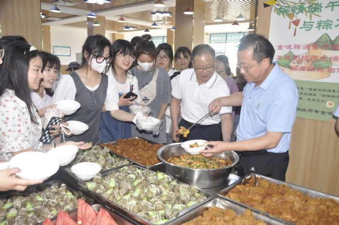 和同學們一起吃完午餐,王子龍表示,學校舉辦端午節活動目的就是讓同學們感受到家的溫暖,加深師生之間的聯係,希望同學們努力學習、用心讀書,成為德智體美全麵發展的人才,為學校增光添彩。