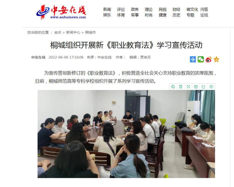 中安在線:《桐城組織開展新《職業教育法》學習宣傳活動》