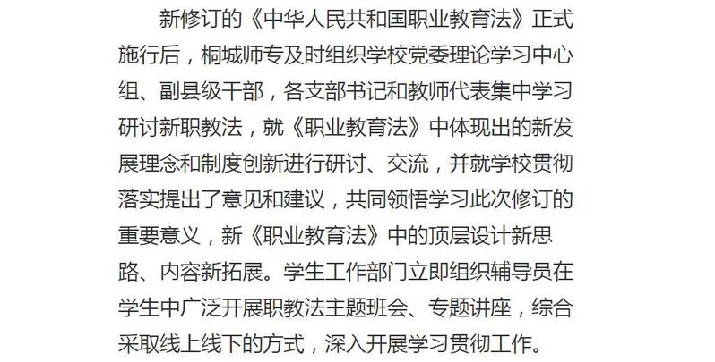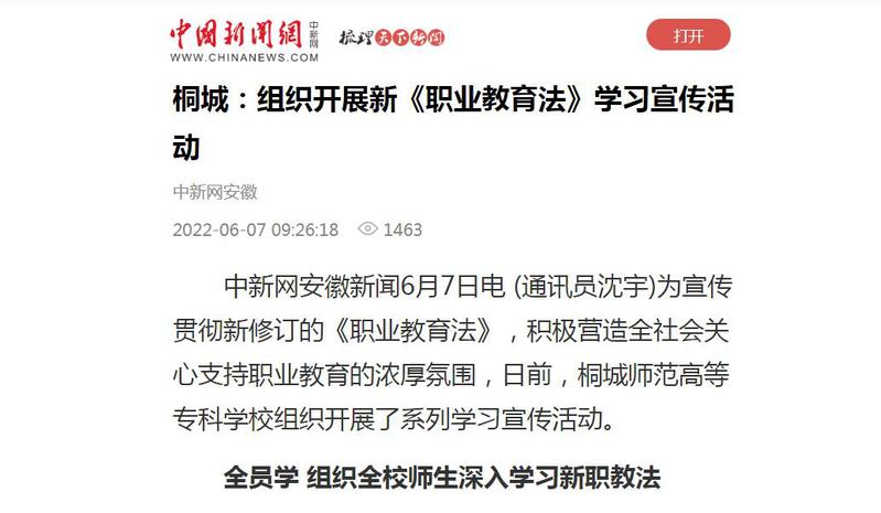 中國新聞網:"桐城:組織開展新《職業教育法》學習宣傳活動"