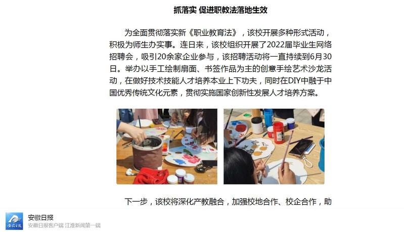 安徽日報:“桐城:組織開展新《職業教育法》學習宣傳活動”