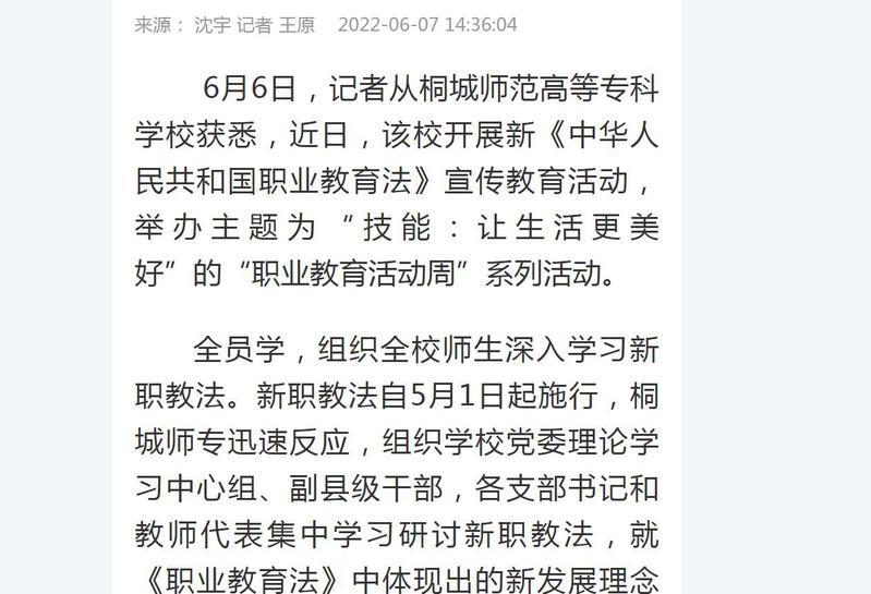 法治安徽網:《桐城師專開展新職業教育法普法宣傳活動》