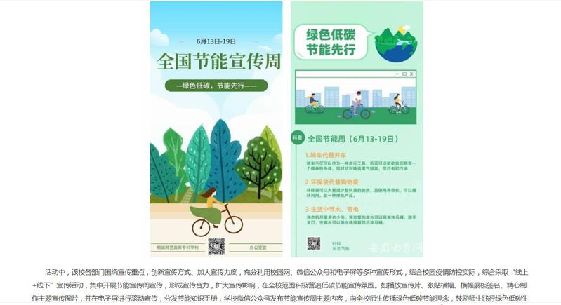 安徽教育網:《倡導綠色低碳 桐城師範高等專科學校開展全國節能宣傳周活動》