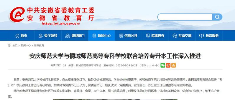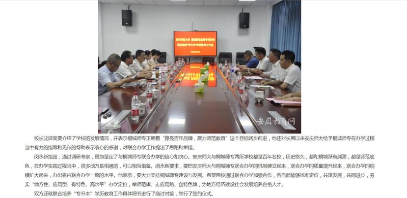 安徽教育網:《安慶師範大學與桐城師範高等專科學校聯合培養專升本工作深入推進》