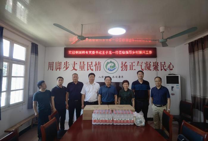 8月10日,桐城師專黨委書記王子龍到桐城市唐灣村開展鄉村振興調研和“夏送清涼”慰問活動。學校紀委書記張敏麗,黨委委員、組織部部長、工會主席王宏偉,黨委委員、宣傳部部長伍建強,唐灣鎮黨委書記張朝陽等陪同調研和慰問。