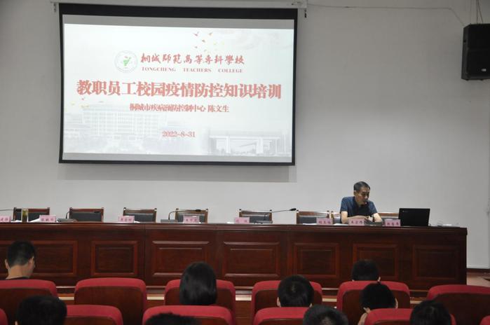 會前,學校特邀桐城市疾控中心主任陳文生開展教職工校園疫情防控知識培訓。
