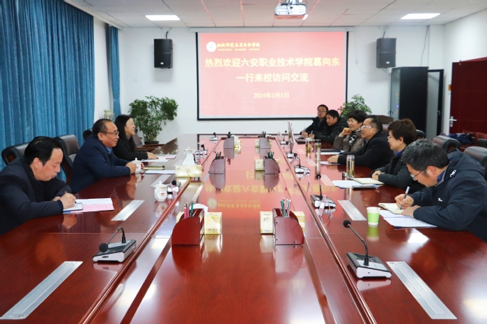 3月5日,六安職業技術學院校長葛向東,黨委副書記李萍,學工處處長陳光友一行來我校考察調研。校黨委書記王子龍主持座談會,黨委副書記、紀委書記張敏麗,副校長程玉梅,學生處負責人參加座談會。