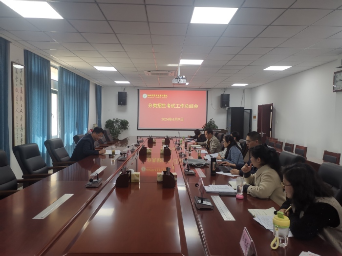 4月9日上午,學校組織召開2024年度分類招生考試工作總結會。會議由黨委委員、副校長王宏偉主持召開,監察審計處、招就處、教務處等職能部門領導及各係部負責人參加了本次會議。