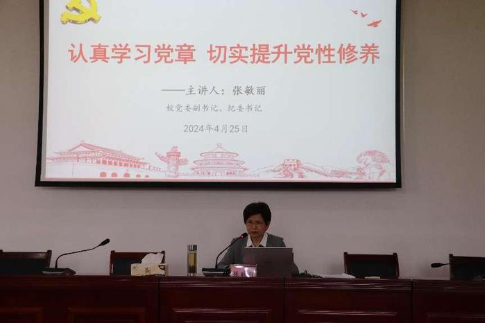 開班式結束後,張敏麗為廣大師生積極分子上了題為“認真學習黨章 切實提升黨性修養”的專題黨課。張敏麗結合學員實際,從端正入黨動機,不斷堅定理想信念、認真學習黨章,強化紀律規矩意識、立足本職崗位,積極向黨組織靠攏三個方麵對《中國共產黨章程》進行了全麵闡述。張敏麗指出,黨章是每一位黨員都應該學習並共同遵守的根本行為規範。入黨積極分子都應通過學習教育,將黨章內化於心,外化於行。張敏麗強調,各位黨員和入黨積極分子要以此次入黨積極分子培訓班學習為新的起點,立足本職崗位,強化理論武裝,牢固樹立宗旨意識,充分發揮先鋒模範作用,及時總結思想匯報,積極向黨組織靠攏。