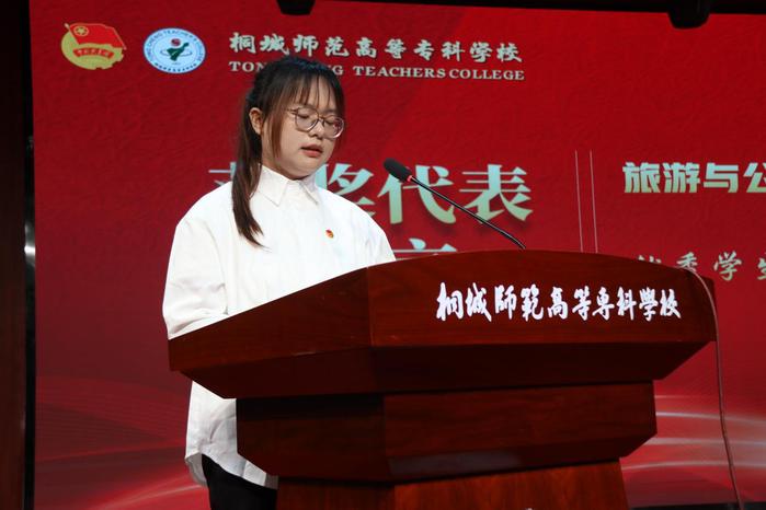 為充分發揮先進典型示範引領作用,激勵我校青年學生踔厲奮發、創先爭優、奮發有為,以優異成績向新中國成立75周年和建校120周年獻禮。桐城師範高等專科學校2024年“五四”表彰大會暨“青馬工程”培訓班結業儀式在校音樂廳隆重舉行。校黨委副書記、紀委書記張敏麗,黨委委員、副校長王宏偉,黨委委員、宣傳部部長伍建強出席大會。各黨總支書記,學生處、組織人事處、思政部負責人,各係學生工作分管主任,校團委全體成員,各係團總支書記,受表彰學生代表,第十期“青馬工程”培訓班學員代表共200餘人參加大會。大會由黨委委員、宣傳部部長伍建強主持。說明:569277318887750472