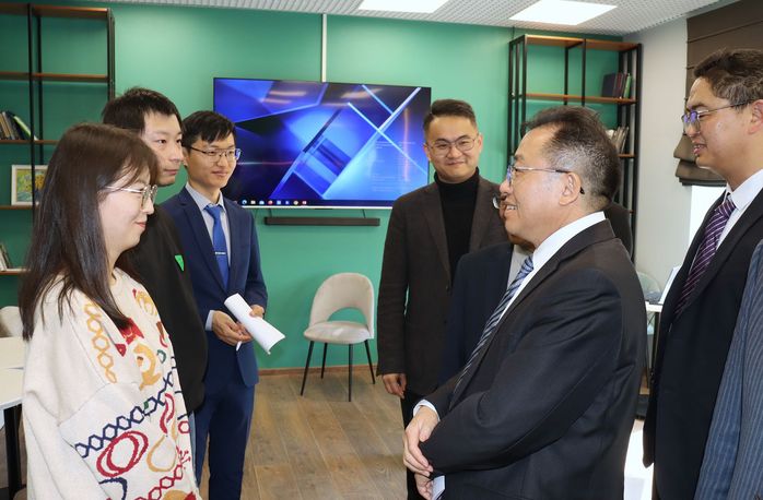 座談會結束後,王子龍一行在中亞經濟技術學院負責人的陪同下參觀了校園、實驗室、實習實訓室、圖書館,學生活動中心等場所,並現場觀摩了教師上課以及學生畢業設計作品。