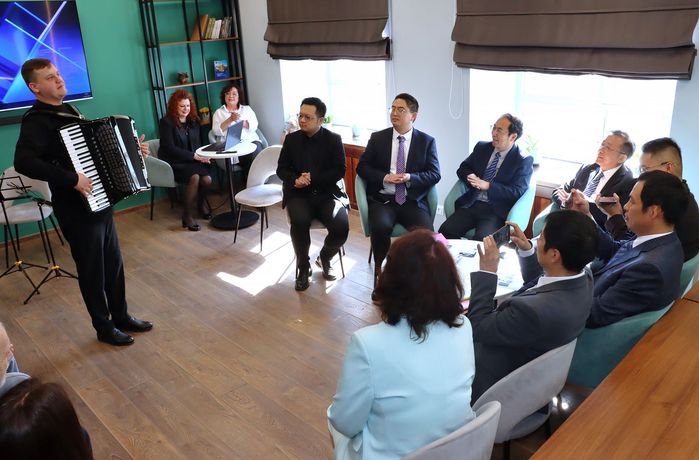 王子龍一行還前往阿爾泰國立大學規模最大的學院人文學院考察,與人文學院院長拉裏薩·伊萬諾夫娜·涅赫維亞多維奇、有關副院長、係主任以及教師代表交流座談,並會見了三位來自中國的留學生代表,詳細詢問了他們的學習和生活等情況,觀看了人文學院藝術係的教師代表的手風琴獨奏以及四名學生組成弦樂團的樂器表演。