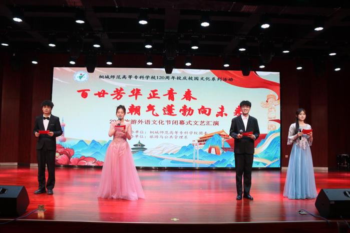 6月19日晚7點,由校團委主辦、旅遊與公共管理係承辦的桐城師範高等專科學校辦學120周年校慶文化係列活動——第七屆旅遊外語文化節閉幕式文藝匯演在校音樂廳隆重舉行。校黨委副書記、紀委書記張敏麗,旅遊與公共管理係主任汪庭才,商貿與電子信息係主任徐偉及全校師生代表200餘人共同觀看了匯演。