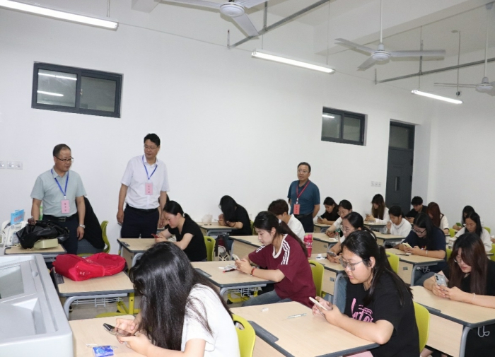 學校2023-2024學年第二學期期末考試於7月1日開始,曆時5天,7月5日結束。為確保考試工作順利進行,提高考試管理的科學性和有效性,嚴肅考風考紀,7月2日上午,黨委書記王子龍,校黨委委員、副校長王宏偉,黨委委員、宣傳部長伍建強帶領教務處及各係相關負責同誌深入考場巡查考試情況。