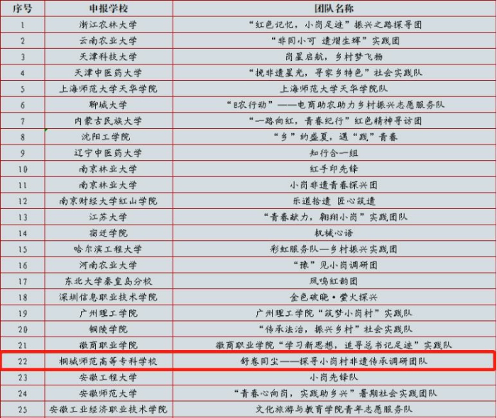 近日,安徽省學生聯合會公布了2024年全國大學生暑期“三下鄉”社會實踐“傳承小崗精神助力鄉村振興”專項活動入選團隊名單。我校“舒卷同塵——探尋小崗村非遺傳承”調研團隊在全國高校諸多團隊評選中脫穎而出,成功入選。