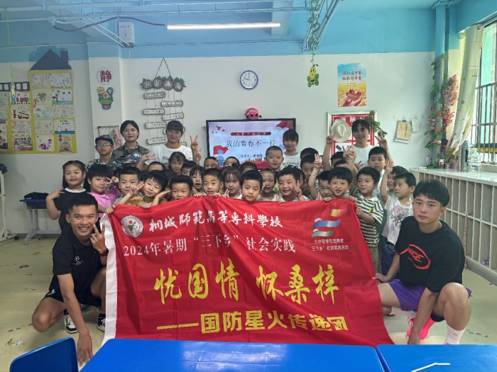 8月16日至8月18日,國防星火傳遞團的成員們走進桐城市金色陽光幼兒園和宇翔教育培訓學校,將安徽省潛山野寨中學探訪之旅的所見所聞、所思所感融入宣講小課堂,在小朋友們的心中埋下一顆國防教育的種子。